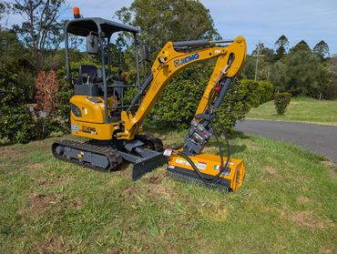 Our compact yet powerful 1.7t excavator ideal for residential and small-scale projects in the Northern Rivers region, particularly in areas with limited access. We offer specialized contracting services including site preparation, post hole digging, stump carving, tip runs, and comprehensive excavation, earthworks and vegetation mulching.